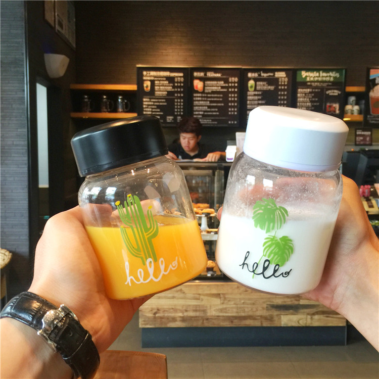 创意可爱仙人掌迷你玻璃杯水瓶男女学生带盖韩版小清新随手水杯子