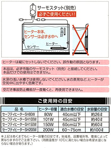 "Black pipe adoption" It is inconspicuous in the tank! New standard "Unified standard" New heater appeared thermostat connection! ● Heater capacity: 200W ● Approximate water tank: 60 ~ 75cm or less ● Estimated water capacity: Approximately 100 liters
