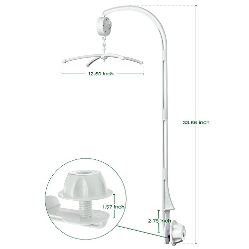 ✔ SUITES ALMOST ALL BABY CRIBS - Clip crib rail thickness up to 1.57 inch, Clip crib rail height up to 2.75 inch. Hook Rotates while playing music, you can pause while playing