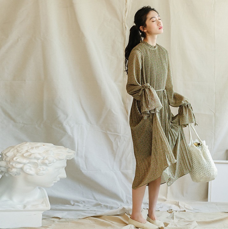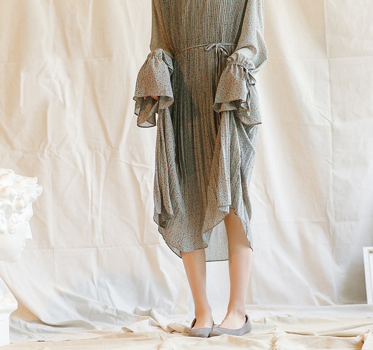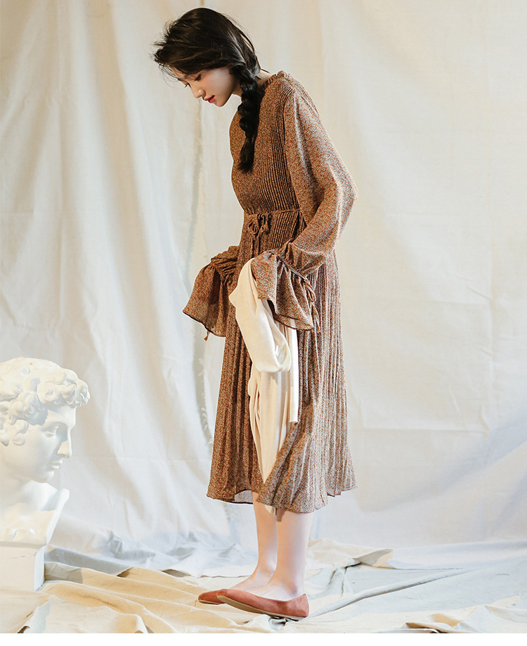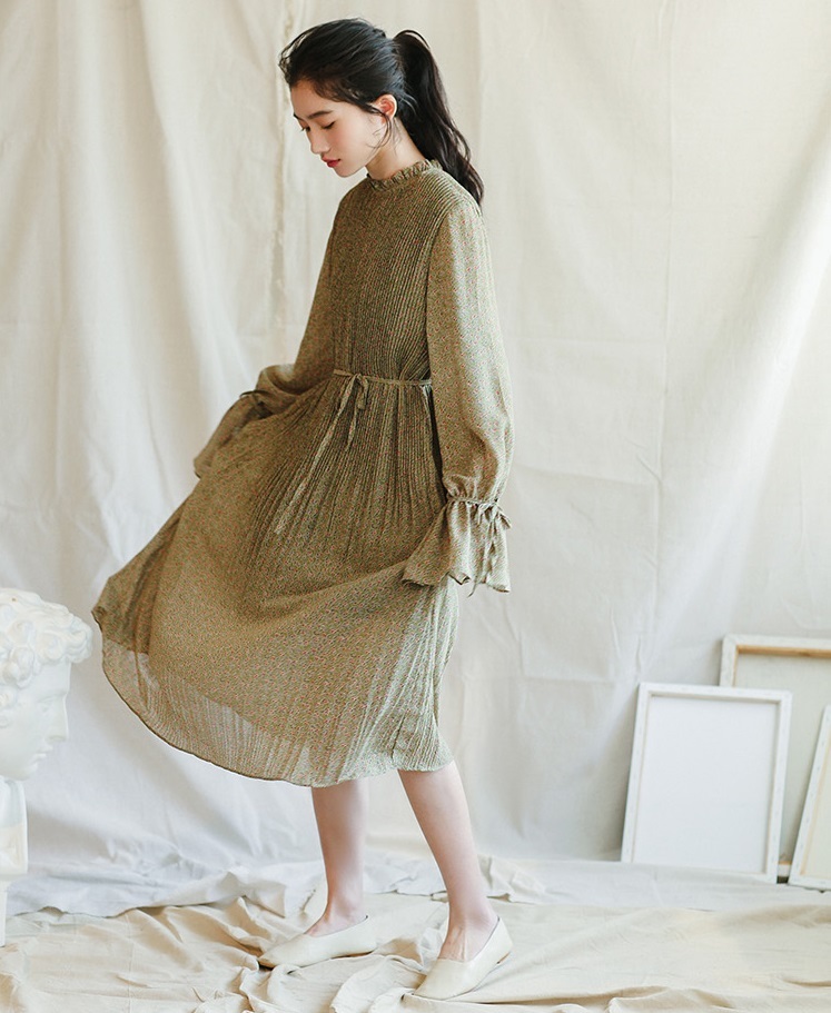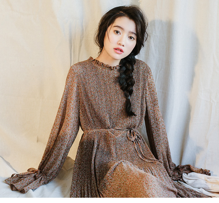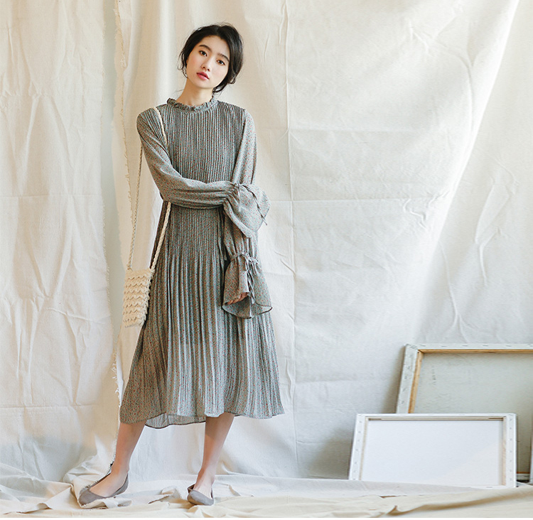 スカート部分は細かなプリーツ仕様で程よい広がりと丈感がポイントの1枚です。