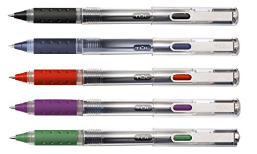 -. Feature : Precision writing tip for sharp, accurate writing / Elastomer grip for comfort and control / Stainless steel clip secures to pockets and notebooks short: Smooth flowing liquid ink dries quickly / Assortment includes 3 black, 3 blue, 2 green, 2 purple and 2 red