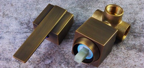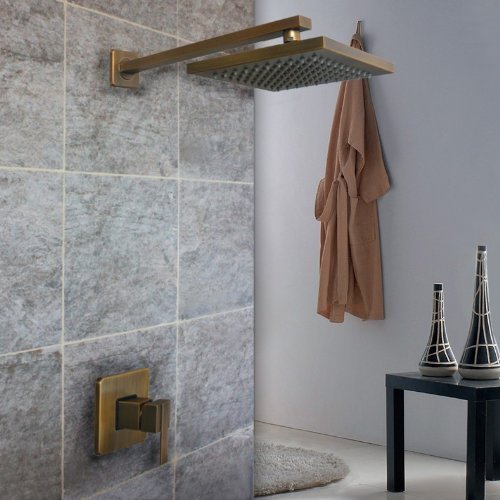 Rozin Antique Brass Bath Rain Shower Faucet with 8" Square Shower Head + Mixer Valve