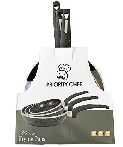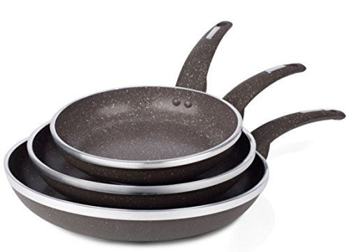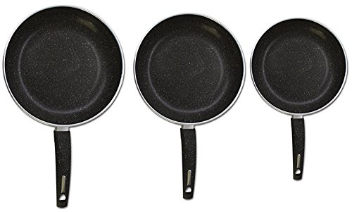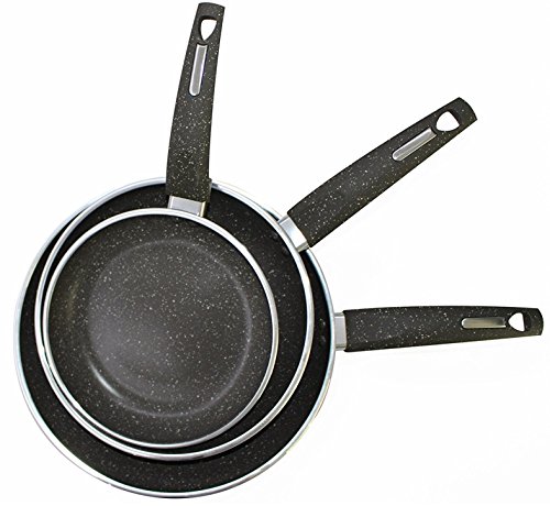 Made of professional-grade aluminum alloy, this 3-piece cookware collection is exceptionally durable and safe to use. Designed for even heating, these pans will not burn or scorch your food. Noted for its durability, they won't easily bend or warp.