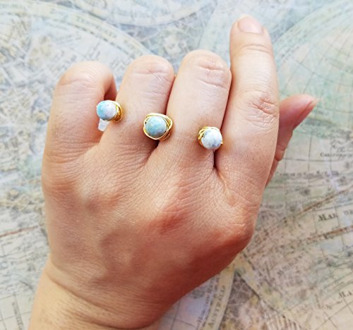 -. Title : 2 Finger Ring, Genuine Caribbean Larimar Statement Ring, Larimar Ring, Two Finger Ring, Statement Ring, Multi Finger Ring