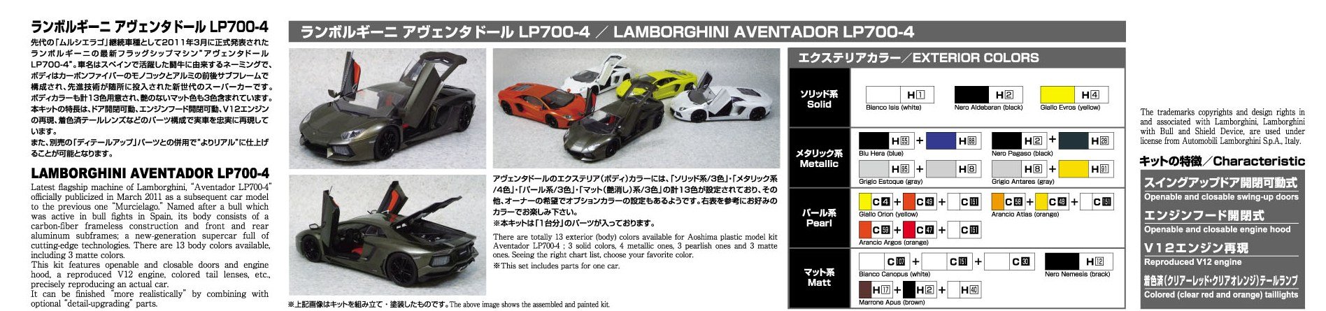 Aoshima 1/24 Lamborghini Aventador LP700-4 w Engine Detail AOS00 AOS001424