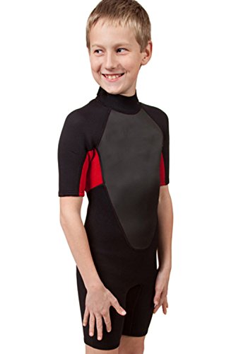 REALON Wetsuits for Children Premium Neoprene 3mm Youth's/Kids Shorty Surfing Suit Swimming Suit Rash Guard Xspan Wetsuit Back Zip Spring (M)