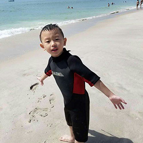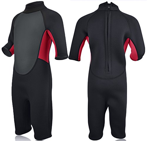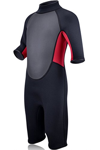 REALON Kids Wetsuit Premium Neoprene 3mm Youth/Children Shorty Surfing Suit Swimming Suit Rash Guard XSPAN Wetsuits Back Zip Spring (S)