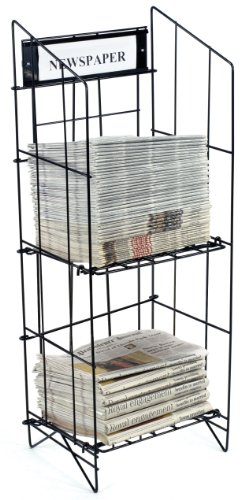 Displays2go Newspaper Rack with Includes a 14 x 4.5 Inches Sign Frame, Black Coated Steel Wire, Floor Standing (NRWRCB2T)