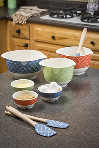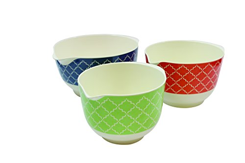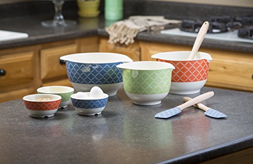Tablecraft Farmhouse Collection Mixing Bowls (Set of 3) 2.5/2/1.5 quart, Blue/Orange/Green