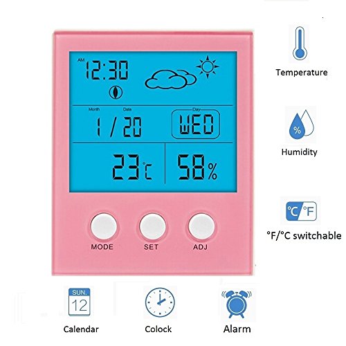 WERSHOW Hygrometer Thermometer, Digital Humidity Monitor with Temperature Monitor, Indoor/ Outdoor Thermometer, Probe, Temperature Gauge Humidity Meter Battery Included(Pink)
