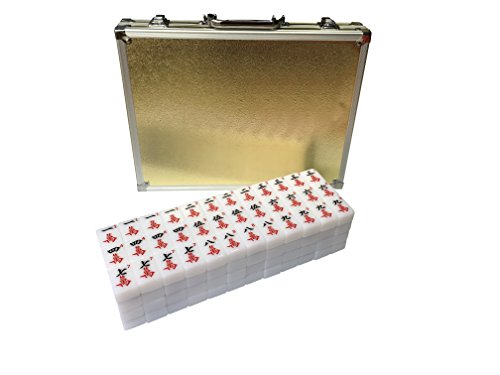 Chinese Mahjong Set with Numbered Tiles, 144 White Tiles Classic Full Size with Aluminum Case, G-SHOP