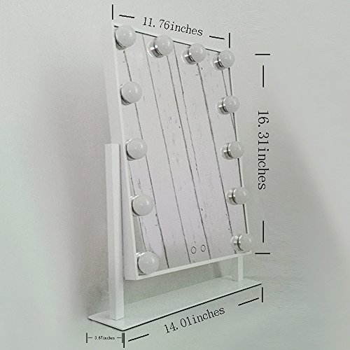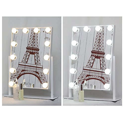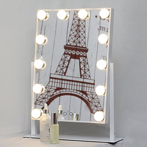 Aoleen Hollywood Makeup Vanity Mirror with Light Dimmable Lighted Tabletop Mirror with LED Bulbs Two Kinds of Light Color Conversion (Glossy White)