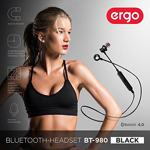 -. Title : Wireless Bluetooth Headphones - ERGO BT 980 - Noise Cancelling Magnetic Wireless Earbuds - HD Stereo Headphones with Microphone for Travel, Jogging, Sports, Gym