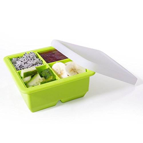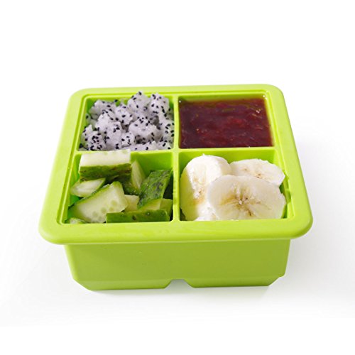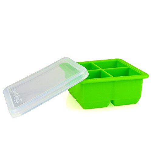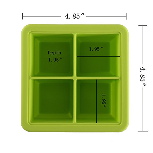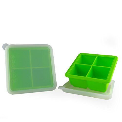 Mirenlife 2 Inch Large 100% Pure Food Grade Silicone Ice Cube Tray with Lid, LFGB/ FDA Certified Silicone Mold, Baby Food Storage, Pinch Test Passed, 4 Cube, Set of 2, Green