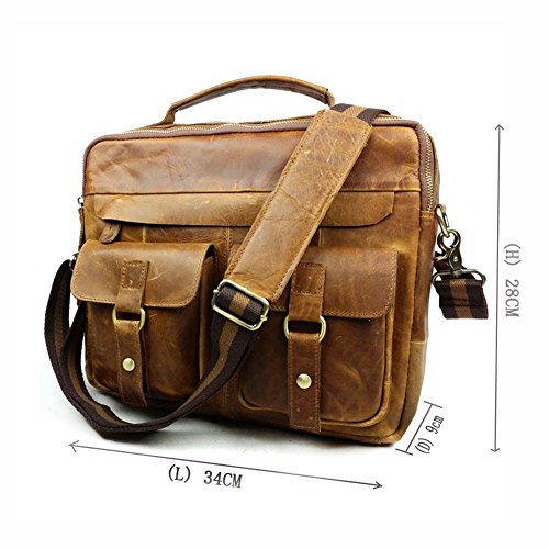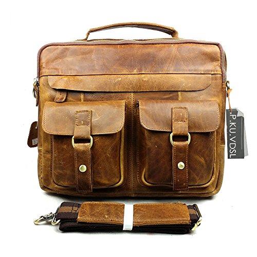 -. Brand : P.KU.VDSL -. Department : mens -. Feature : ★ HIGH-GRADE CORTICAL MATERIALS -- P.KU.VDSL Men's Vintage Genuine Leather Laptop Messenger Bags. 100% excellent vintage crazy horse leather with cotton as interior lining, combining with brass fitting. Durable top handle and adjustable shoulder strap ( Warm Promt: The weight of the maximum load is less than 7 kg ). / ★ SIZE & WEIGHT -- 34cm(L)x28cm(H)x9cm(W)/ 13.4"(L)x11"(H)x3.5"(W). 2.14lb weight. Perfect size easy to carry 13" MacBook Pro / Air, A4 file, iPad, kindle, cellphone, wallet, books and other small stuffs. Usage: commute, weekend, field, travel, school or everyday use. / ★ ORGANIZATION -- Detachable and adjustable cotton braid shoulder strap, Leather top handle, Large space 2 main pockets; 2 front pockets; 1 back pocket. Wide rear zippered pocket for your newspaper and a front pocket for easy access to your essentials. / ★ MULTIPURPOSE STRAP -- With detachable and adjustable shoulder straps for comfortable wearing, no compression feeling at all. 3 Ways to hold as: handbags, shoulder bags, crossbody bags. This high quality retro and stylish messenger bag is suitable for Commute, Business, Travel, Work, College or Everyday use. / ★ GUARANTEED --We are so confident in the quality of our product that we offer a 45-day satisfaction guarantee! If you are unsatisfied, simply contact us to return the product for a full refund. (NOTE: Product Image 100% In-Kind Shooting, It Is Normal That The Color cause a Little Different Due To Production Batch or Ambient Light And Different Display Resolutions). -. PackageQuantity : 1 -. ProductGroup : Apparel -. ProductTypeName : LAGE -. Title : Messenge Bag, P.KU.VDSL® Men's Vintage Genuine Leather Laptop Messenger Bags, Retro Handbag Briefcase for Men and Women, Casual Satchel Crossbody Shoulder Messenger Bag Fits 13 inch Laptop