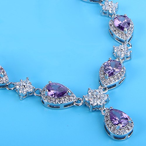-. Feature : Made of crafted environmental friendly Cubic Zirconias, this jewelry shines with grace and beauty. And the metal surface is of high polished finish. / CZ Color: Sapphire Color, Clear; Necklace Length: 17.3in-20in, Pendant Size: 0.5in by 6.9in; Bracelet Size: 7.1 inch L x 0.4 inch W; Earrings Size: 1.4 inch L x 0.4 inch W; Total Weight: 43g / A ideal accessory to your outfit or as an approP.R.Iate gift, e.g.for your Lover, Girlfriend, Wife, Mother, Daughter, Sister, Fiancee, Couple, Valentine or Best Friend,etc; Suitable for daily wear, ball, party, anniversary, prom, graduation, birthday or any special occasions. / The item in picture with ornament is same as the real object without PS. / Exquisite Gift Wrap: Gift Box + Gift Velvet Bag.