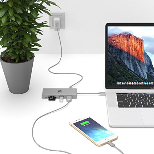 Featuring a USB C adapter 3.1 with a type C charging port, 3 USB 3.0 ports for MacBook, an HDMI port and an SD memory card reader, it provides you with unlimited options!