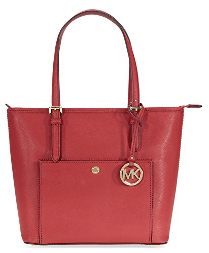 Michael Kors Jet Set Item Medium Top Zip Snap Pocket Tote Saffiano Leather 18K