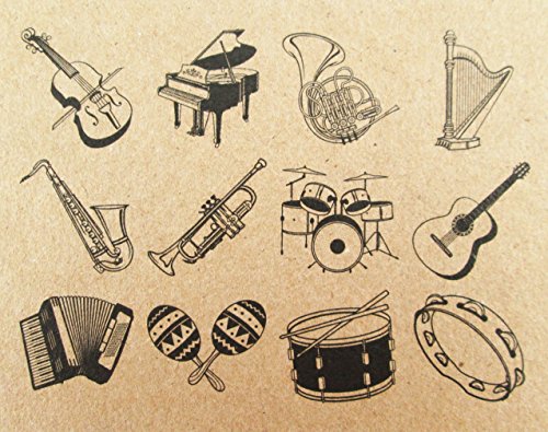Np Crafts 12 Kids Music Instruments Rubber Stamps Set