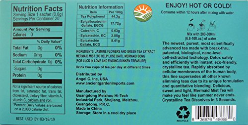 SUPERIOR FLAVOR- organically grown in the pristine gardens of the Guangdong Meizhou Green Tea Plantations. Mermaid Mist (under a different name) is the leading brand of natural and eco-friendly green tea in the east with over 2 billion cups served. No gimmicks, this is the next generation of green diet tea that works by gently suppressing the appetite. Mermaid Mist Jasmine Green Tea even makes those who dislike the taste of green tea savor this flavor.