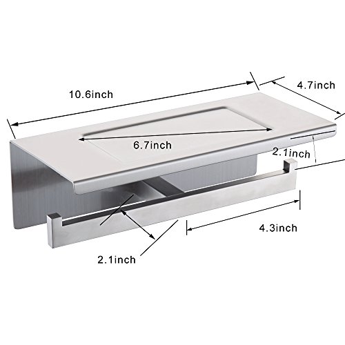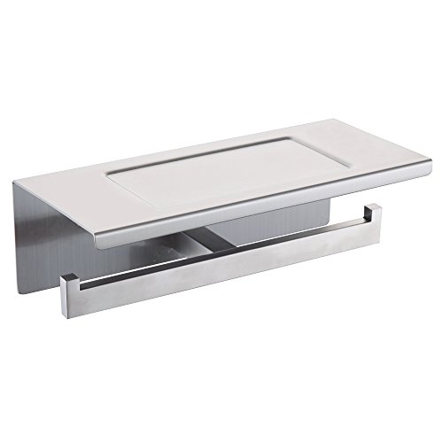 XVL Dual Toilet tissue paper holder with mobile phone storage shelf, Nickel Brushed, G318B