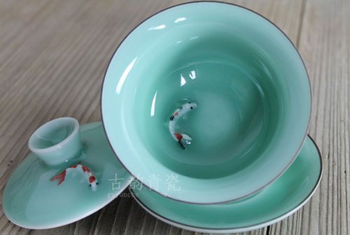 -. Brand : Charming China Longquan Celadon -. EAN : 0521789658867 -. Feature : Capacity: 130cc / Colour: Maiziqing / Gaiwan cup is the Chinese traditional tea cup. It consists of a bowl, a lid and a saucer, also called "San Cai Wan", lid as the sky, saucer as the ground, bowl as the human. How interesting! / The gaiwan with 2 red carps is very beautiful, alive, and looks like a jade cup! How lovely!!! -. Label : Charming China -. Manufacturer : Charming China -. PackageQuantity : 1 -. ProductGroup : Kitchen -. ProductTypeName : KITCHEN -. Publisher : Charming China -. Studio : Charming China -. Title : 1pc Chinese Longquan Celadon Meiziqing Gaiwan Tea Cup Red Carp Pattern 130cc -. UPC : 521789658867