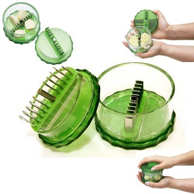 Our Garlic Dicer consists of 20 rotating stainless steel blades, which can leave the garlic cloves in slices or used to chop the garlic to whatever texture you require.