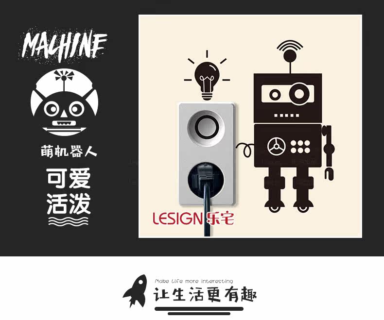 时尚机器人个性装饰开关贴随心贴画客厅卧室儿童房创意插座墙贴纸