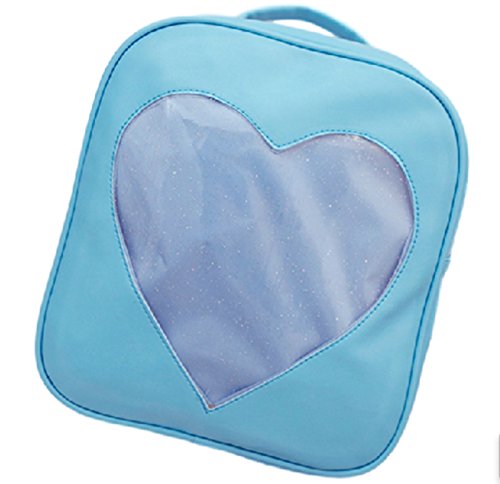 -. Feature : ハートの小窓がとってもキュートな小さめリュックサック♪ / クリアの小窓部分にお気に入りの写真や小物を入れるだけで、遊び心溢れるリュックに! / 小窓部分に推しのキャラクターの缶バッチや写真、 アクリルキーホルダーやきゅんぐるみなどを入れて使われる方も多く、今大流行中のリュックサックです☆ / サイズ:幅 約300mm 高さ350mm マチ 140mm 重量:約750g / カラー:ブラック、ホワイト、グリーン、ライトブルー、パープル、ピンク