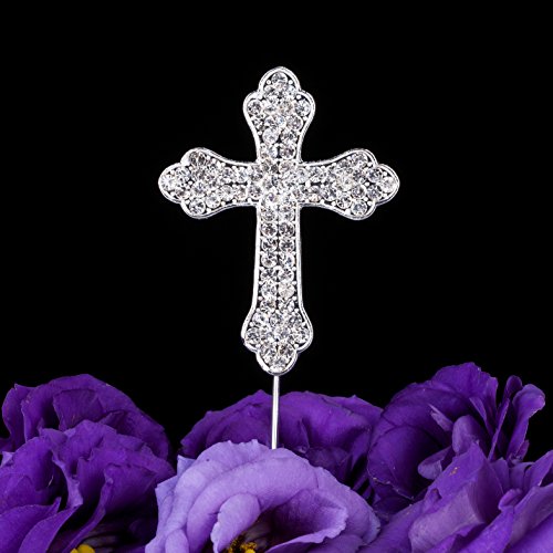LOVENJOY Gift Box Pack Cross Rhinestone Crystal Cake Top Topper for Wedding Religious Baptism Christening First Communion Confirmation (2.2-inch wide)