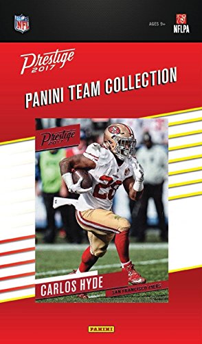 San Francisco 49ers 2017 Prestige factory sealed 10 card team set including Jeremy Kerley, Carlos Hyde, Colin Kaepernick, Pierre Garcon, Vance McDonald and Quinton Patton plus Rookie Cards of Reuben Foster, KD Cannon, Cole Hikutini and Solomon Thomas.