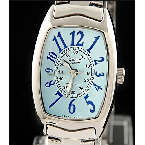 Brand, Seller, or Collection Name:Casio Model number:LTP-1208D-2BDF Part Number:LTP-1208D-2BDF Item Shape:Rectangle Dial window material type:Mineral Display Type:Analog and digital Clasp:Fold-Over Clasp with Double Push-Button Safety Case material:Stainless steel Case diameter:26 millimeters Case Thickness:9 millimeters Band Material:Stainless steel Band length:Women's Standard Band width:11 millimeters Band Color:Silver Dial color:Blue Special features:Luminous, measures-seconds Item weight:4.80 Ounces Movement:Quartz Water resistant depth:30 Meters