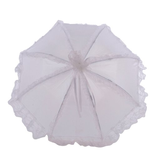 -. Feature : Gorgeous wedding umbrella with lace ruffle / Length: 27'' (69cm) / Diameter: 24.8'' (63cm) / Plastic hook handle with lace decoration / Perfect gift for wedding, christmas, birthday and other events