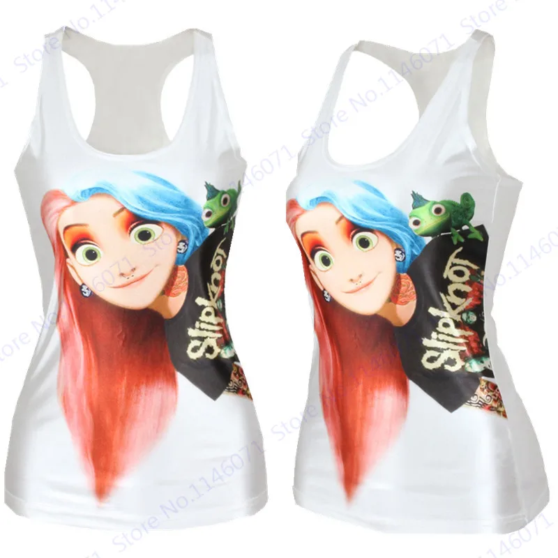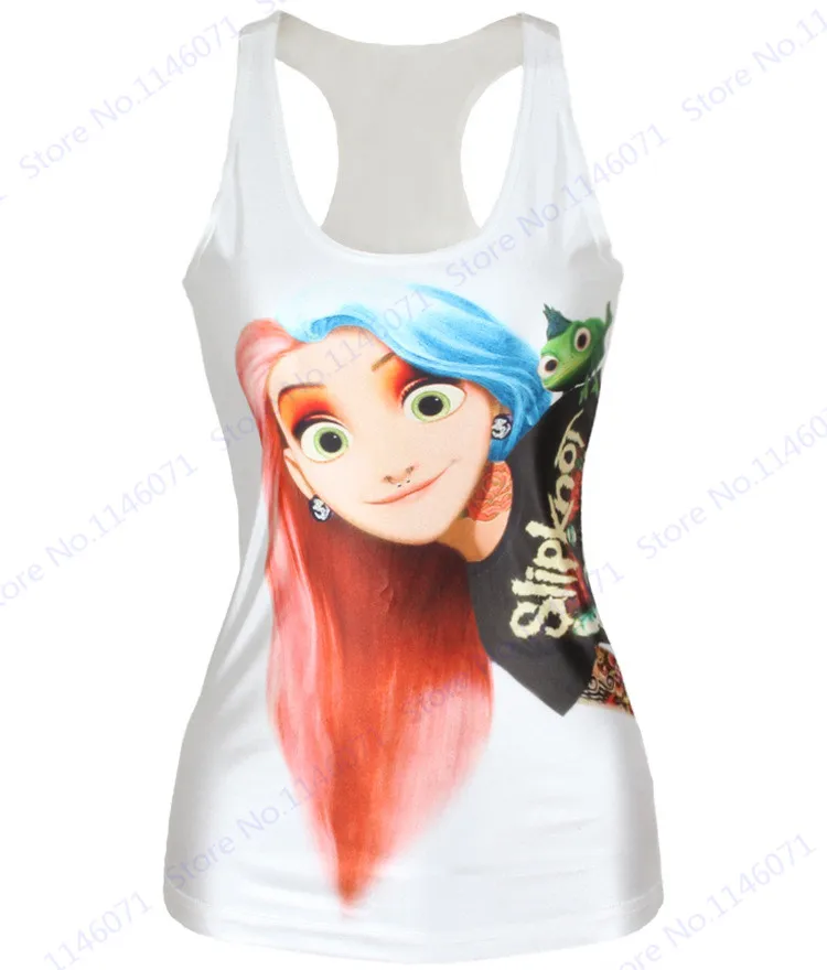 Features 5::Blue Hair Girl Cartoon Summer Sexy Women Tank Top Jogging Vest Singlet
