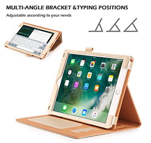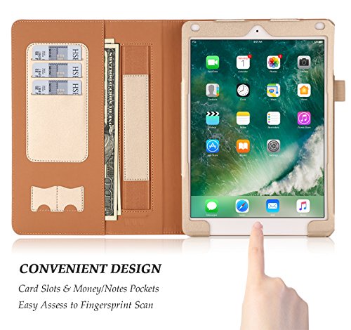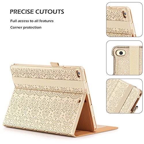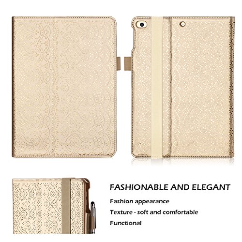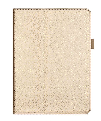 iPad 9.7 2017 Case, WWW [Luxury Laser Flower] Premium PU Leather Case Protective Cover with Auto Wake/Sleep Feature for Apple iPad 9.7 2017 Gold