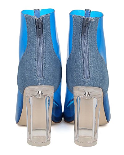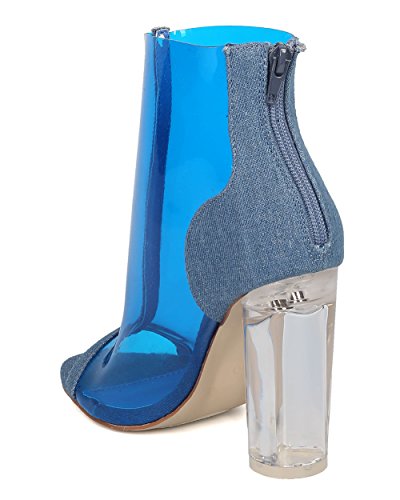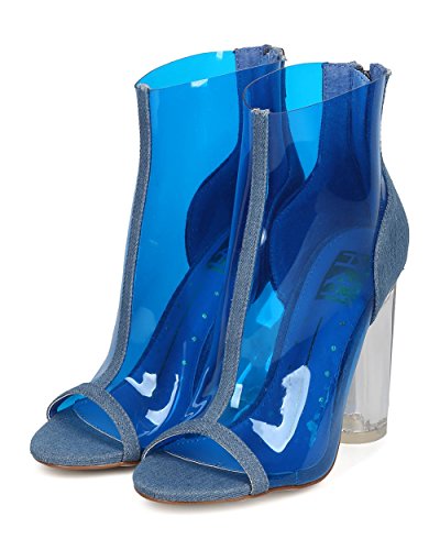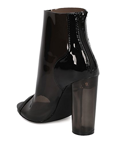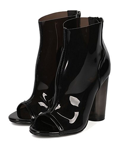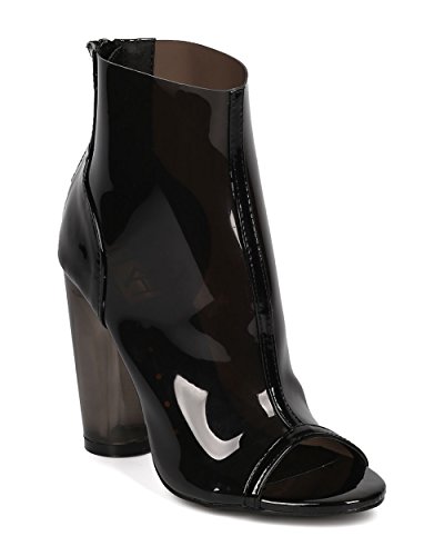 Product Description These lucite booties are made with a peep toe, single sole and stitch accents. Also made with a round block heel and hind zip for easy slip on and off. 0