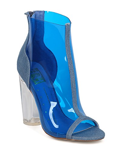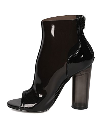 Women Lucite Block Heel Bootie - Round Heel Ankle Boot - Peep Toe Heel Bootie - GH38 By Fahrenheit