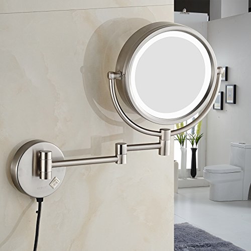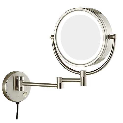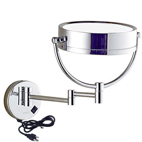 GURUN 8.5 Inch LED Lighted Wall Mount Makeup Mirrors with 5x Magnification,Chrome M1809D(8.5in,5x)