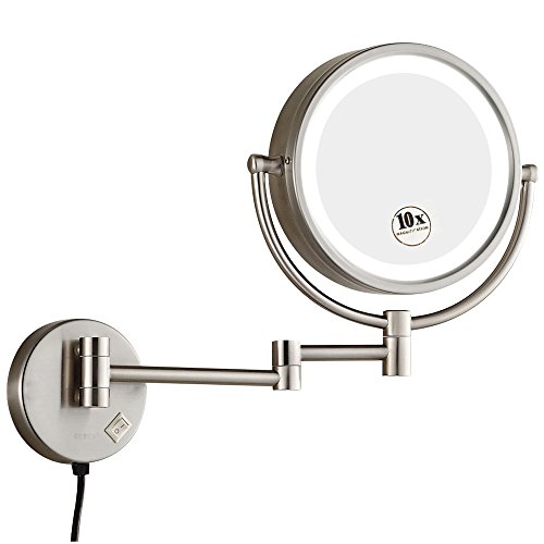 GURUN 8.5 Inch LED Lighted Wall Mount Makeup Mirrors with 10x Magnification,Chrome M1809D(8.5in,10x)