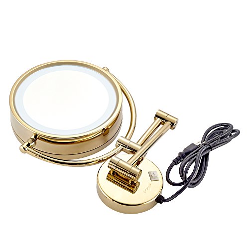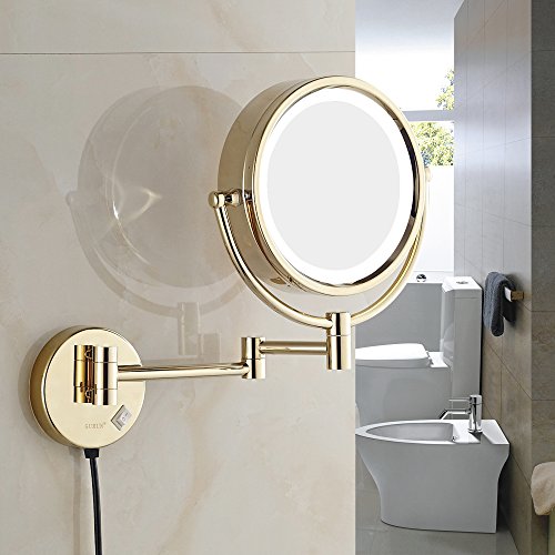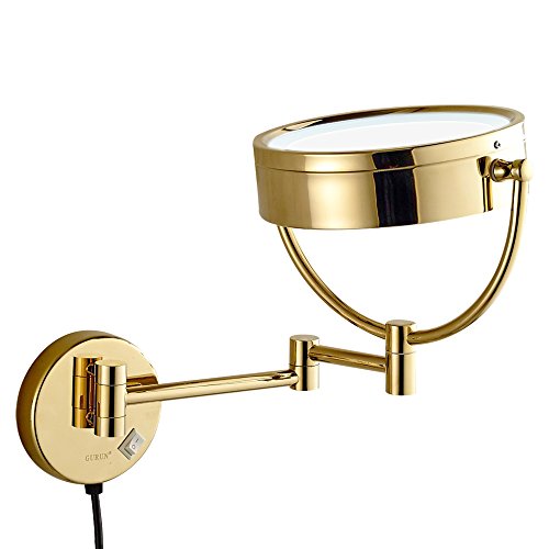 GURUN 8.5 Inch LED Lighted Wall Mount Makeup Mirror with 7x Magnification,Gold Finish M1809DJ(8.5in,7x)