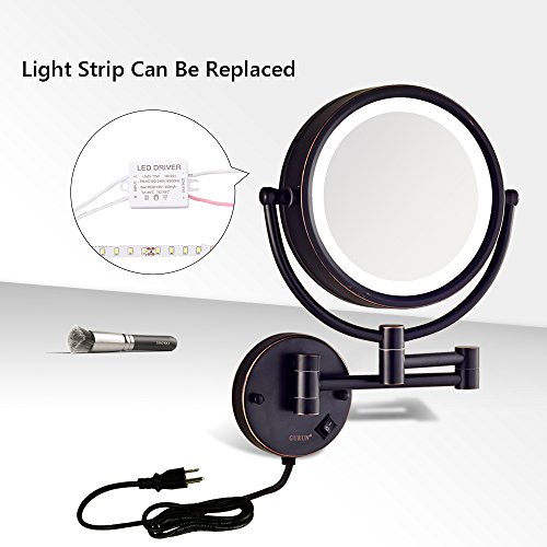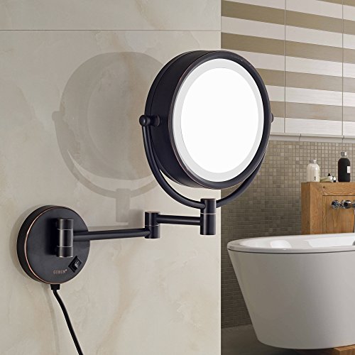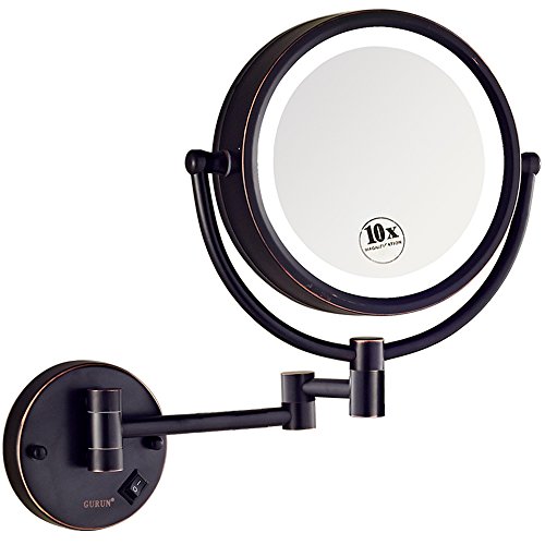 GURUN LED Lighted Wall Mount Makeup Mirror with 10x Magnification,Oil-Rubbed Bronze Finish, 8.5 Inch, BRASS,M1809DO(8.5in,10x)
