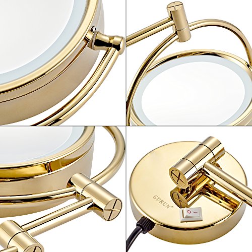 GURUN 8.5 Inch LED Lighted Wall Mount Makeup Mirror with 10x Magnification,Gold Finish M1809DJ(8.5in,10x)