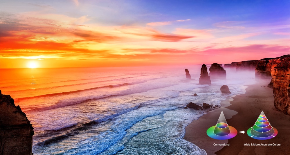 Experience richer u0026amp; more life-like colours with Samsung’s Eco-Friendly Quantum Dot technology. The SUHD TV displays 64 times* more colour expression compared to Samsung’s conventional UHD TVs to provide the most accurate and true-to-life images.