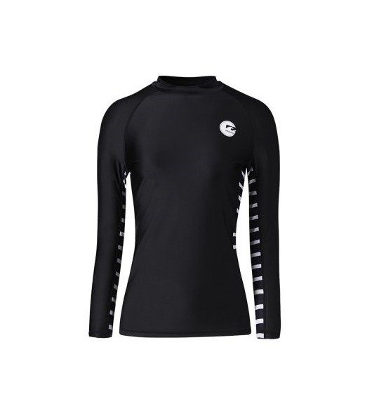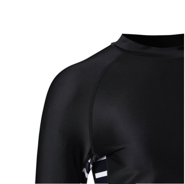 - Hot Summer Water Sports 용 긴팔 Rash Guard 상의- Water Sports 활동 시 저체온증 및 상처 방지 등의 역할 기능과 UV 차단 기능이 있는 쾌적하고 안전한 기능성 의류- 사이바에 스트라이프 패턴 프린트 적용으로 슬림해보이는 효과