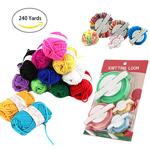 - ❤What you'll get: 12 skeins, total of 265 yards bonbons yarn and 4 size different color pom-pom maker
