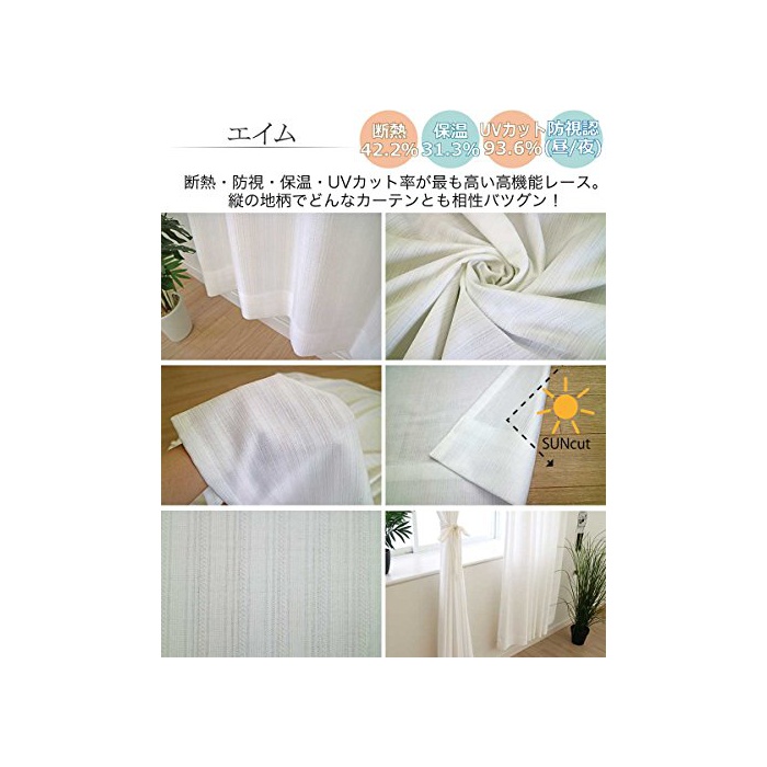 【세트의 레이스 커튼】UV컷율 경이의 93.6%의 레이스 커튼이 세트 입니다.낮도 밤도 밖으로부터 보이기 어려워 프라이버시를 지킵니다.확실히 바탕이 두꺼운 것의 원단과 됩니다 모아 두고, 방에서 다른 것의 경치도 안보이게 됩니다.키는 두꺼운 천 커튼 보다 2cm 짧게 됩니다.