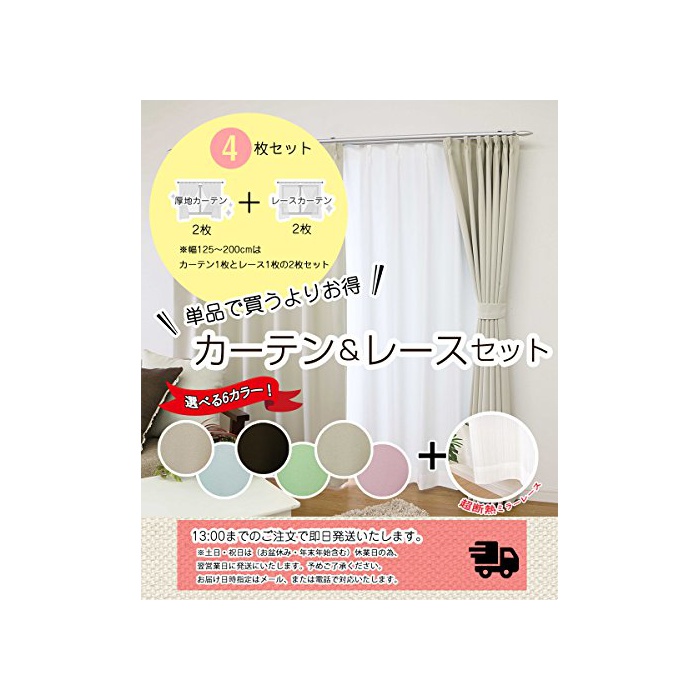 【차광 커튼과 초단열 레이스의 실속있는 세트】각각 단품에 구입 보다 매우 사면 이득!폭100cm은 커튼2매와 레이스2매의 4 매세트,폭125~200cm은 커튼1매와 레이스1매의 2 매세트 입니다.