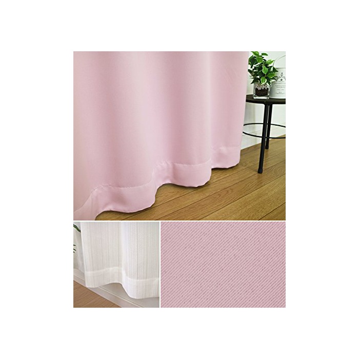 만천 커튼 차광 단열 레이스 두꺼운 천 커튼2매와 레이스2매의 세트 LISA-에임SET핑크 폭100x장120cm 4매 셋트
