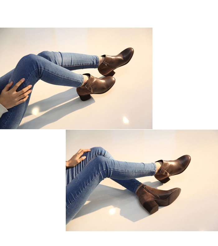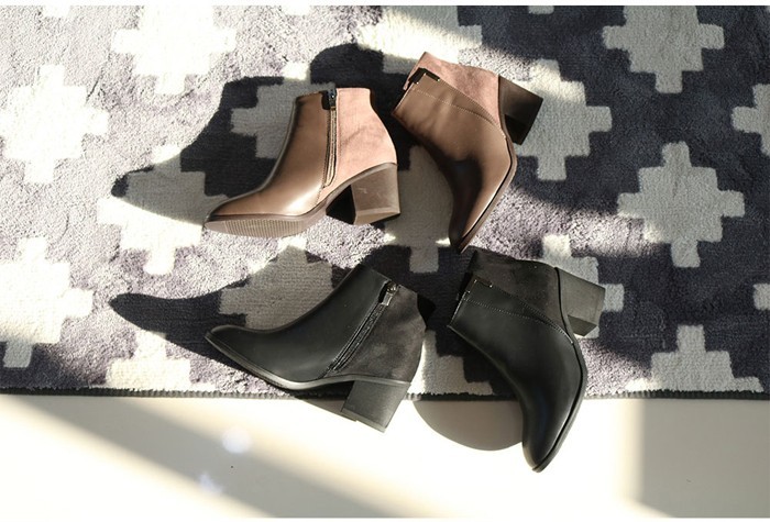 商品名:ブーティ レディース ブーティー チャンキーヒール 太ヒール サイドジッパー 2017 秋 冬 ファッション 靴 婦人靴
