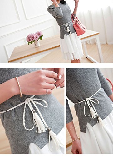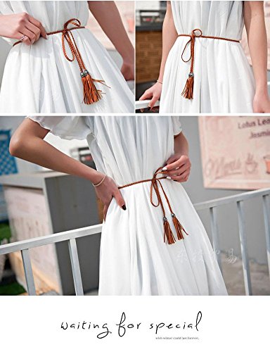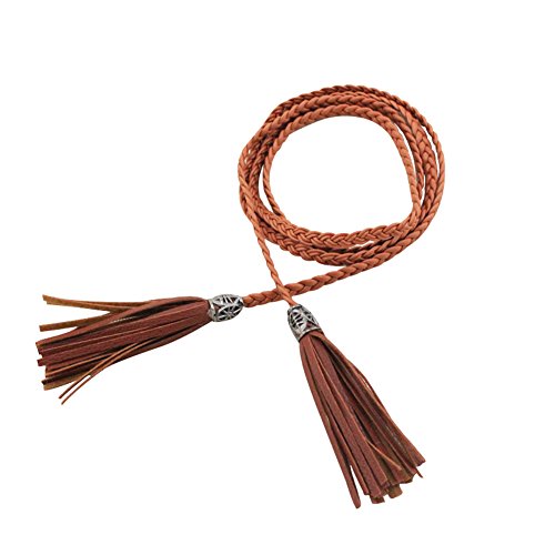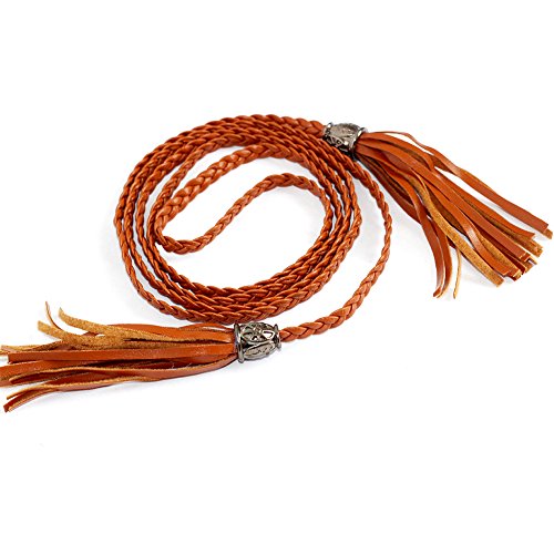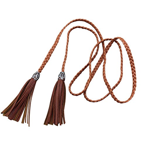 MoYoTo® Women's Classic Thin Braided Leather Belt With Tassels 130mm (Multicolor))